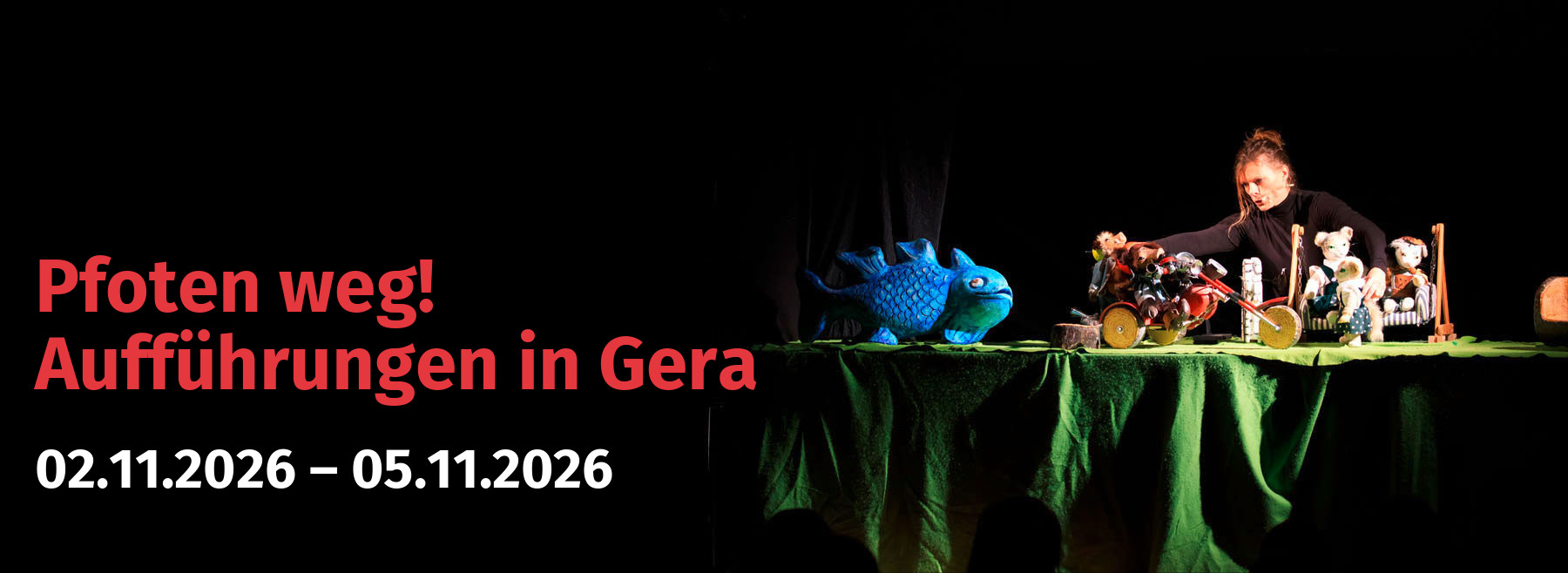 28.09. AKTIONSTAG um 15:00 Uhr in der FIGURENZAUBEREI in Großharrie 29.09.–02.10. finden jeweils um 8:30 Uhr, 9:45 Uhr und 11:00 Uhr Kindergarten - und Schulveranstaltungen statt.